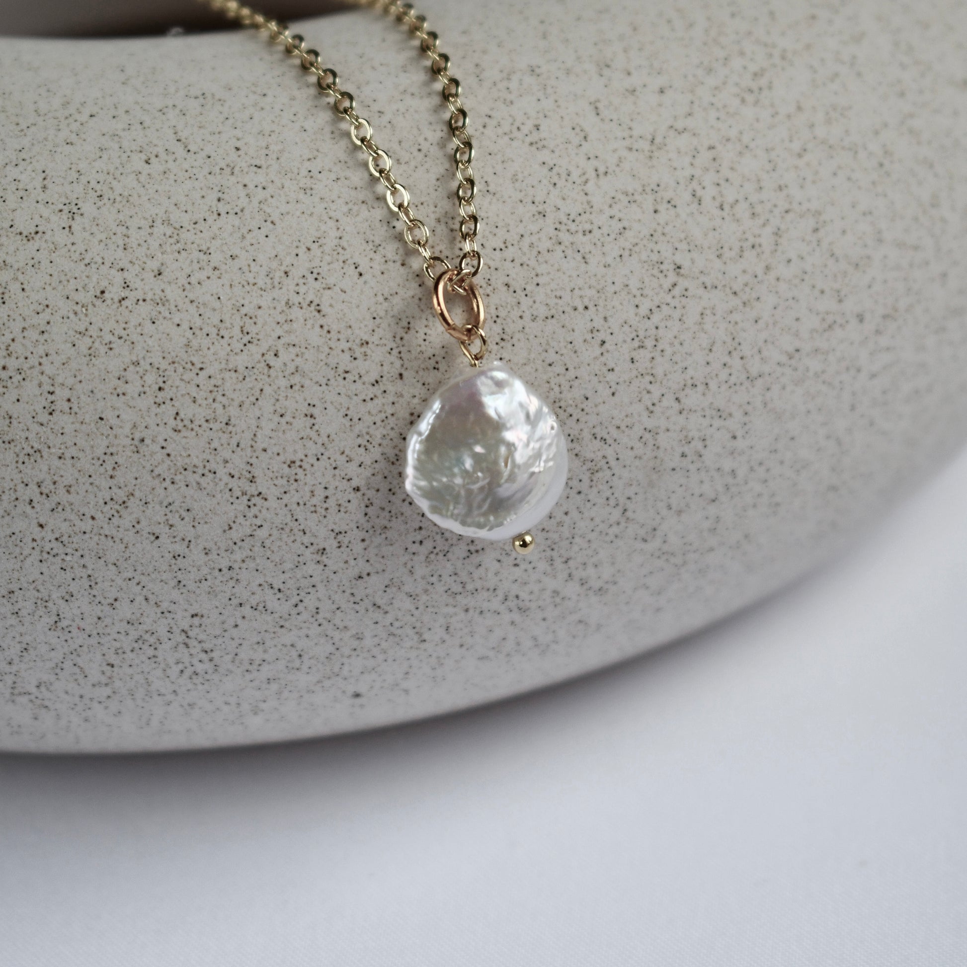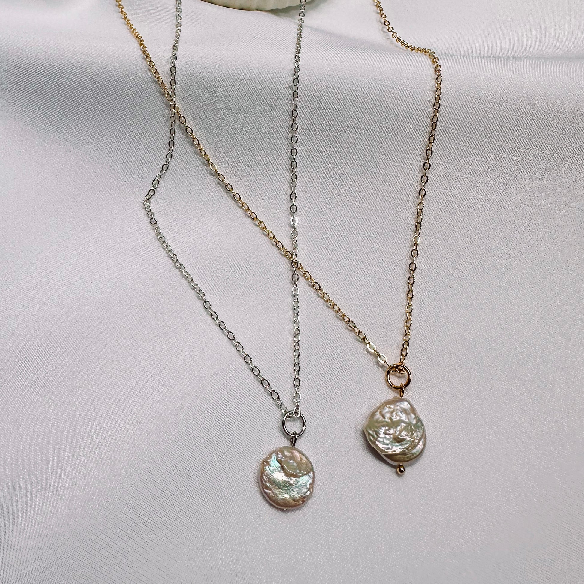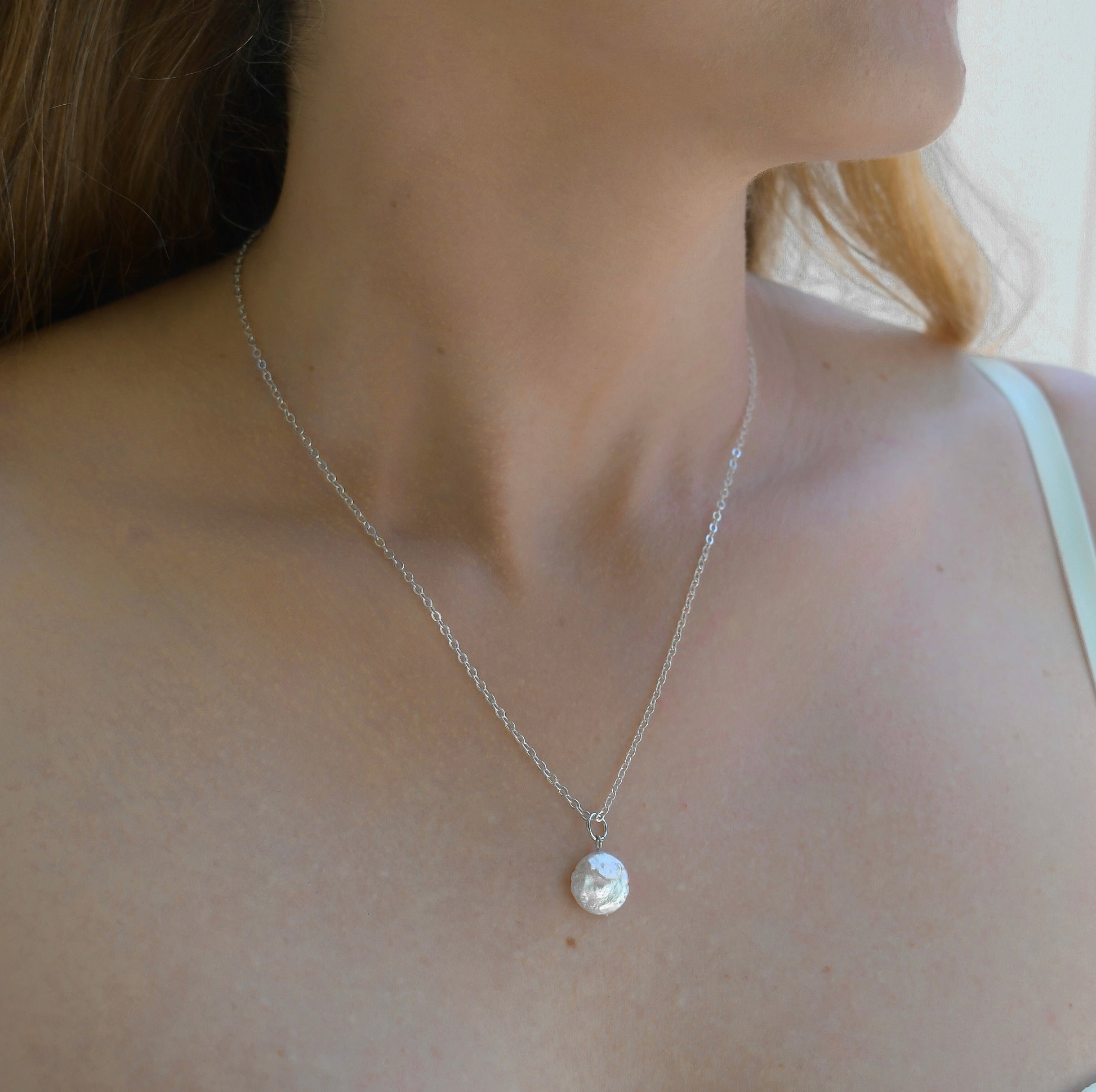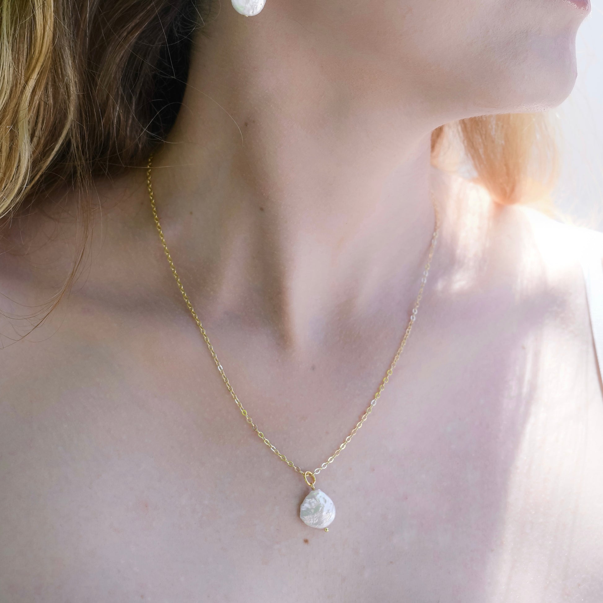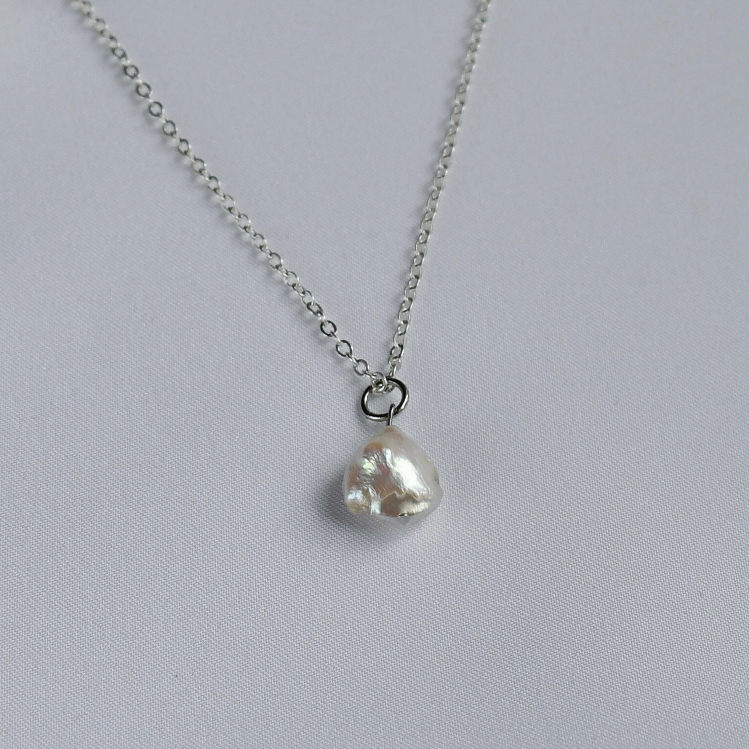 A minimalist pearl necklace featuring a baroque pearl pendant — modern, elegant, and effortlessly timeless.