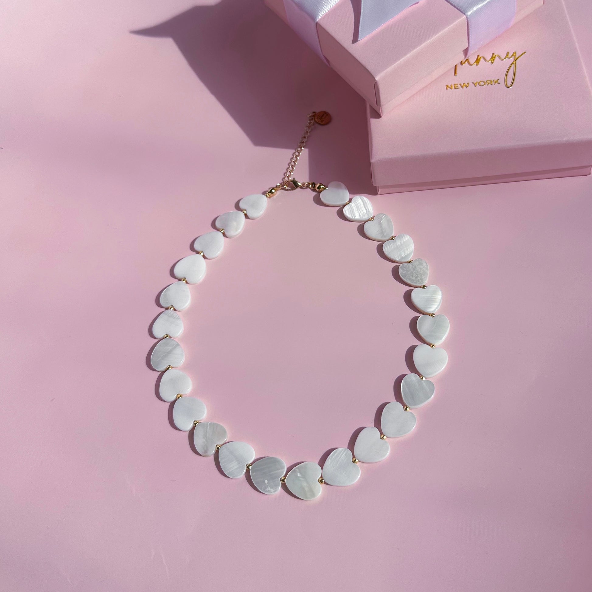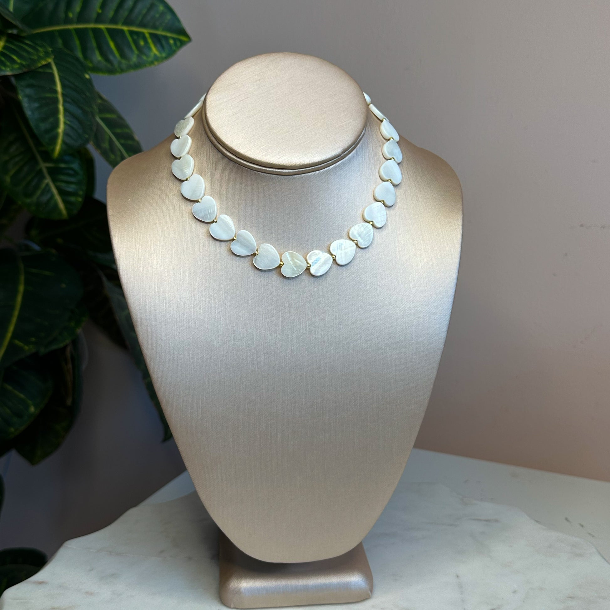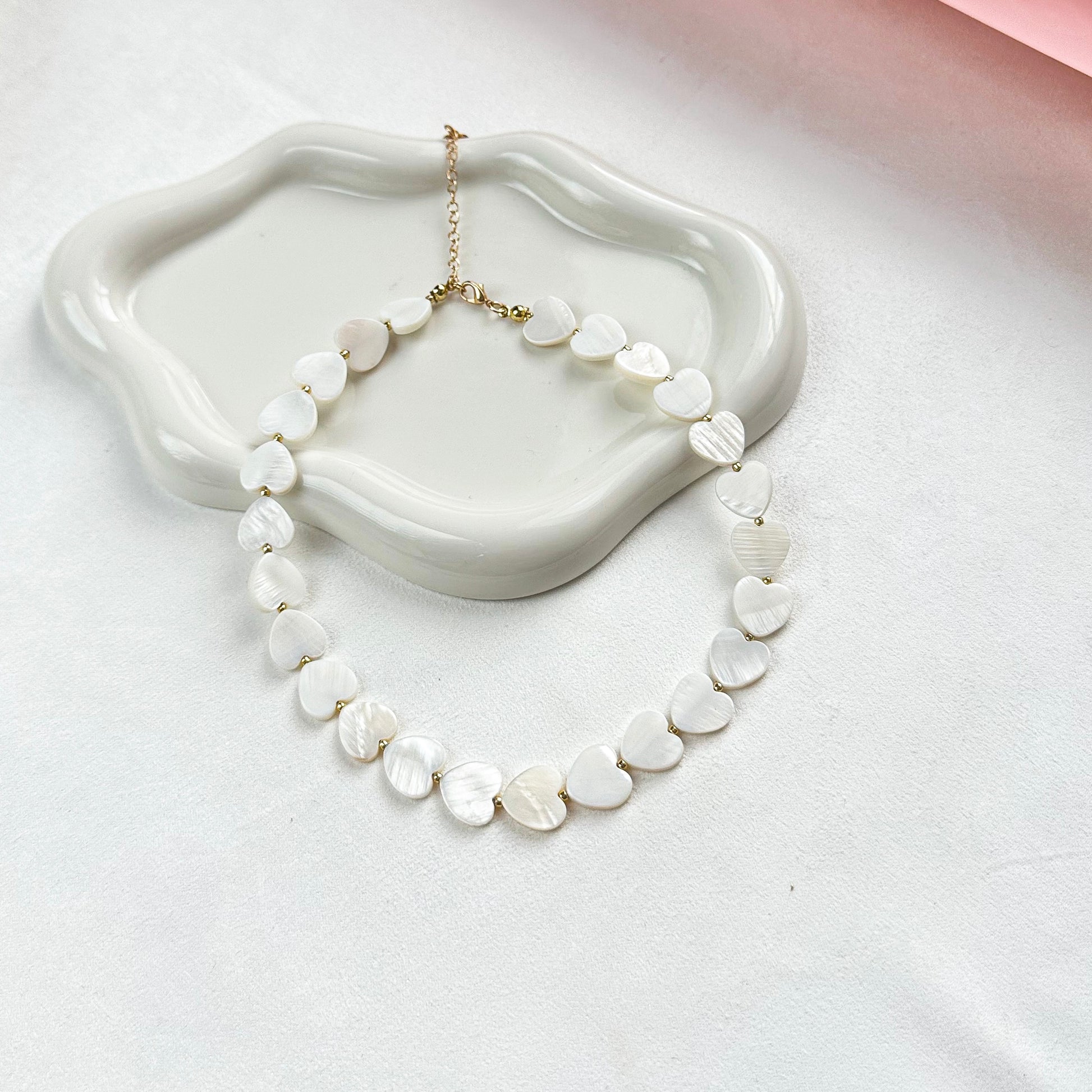 A minimalist choker with a mother-of-pearl heart — delicate, modern, and effortlessly elegant.