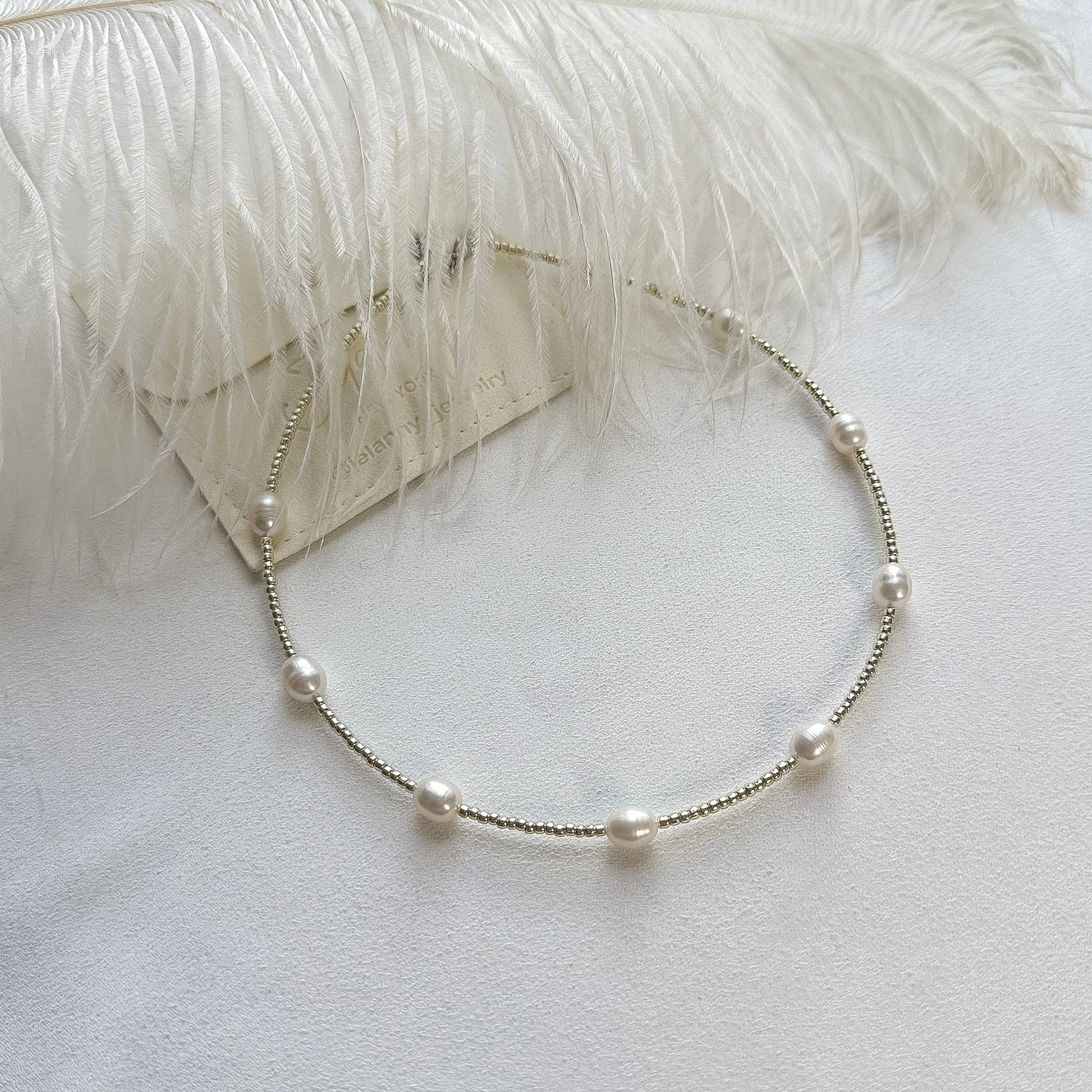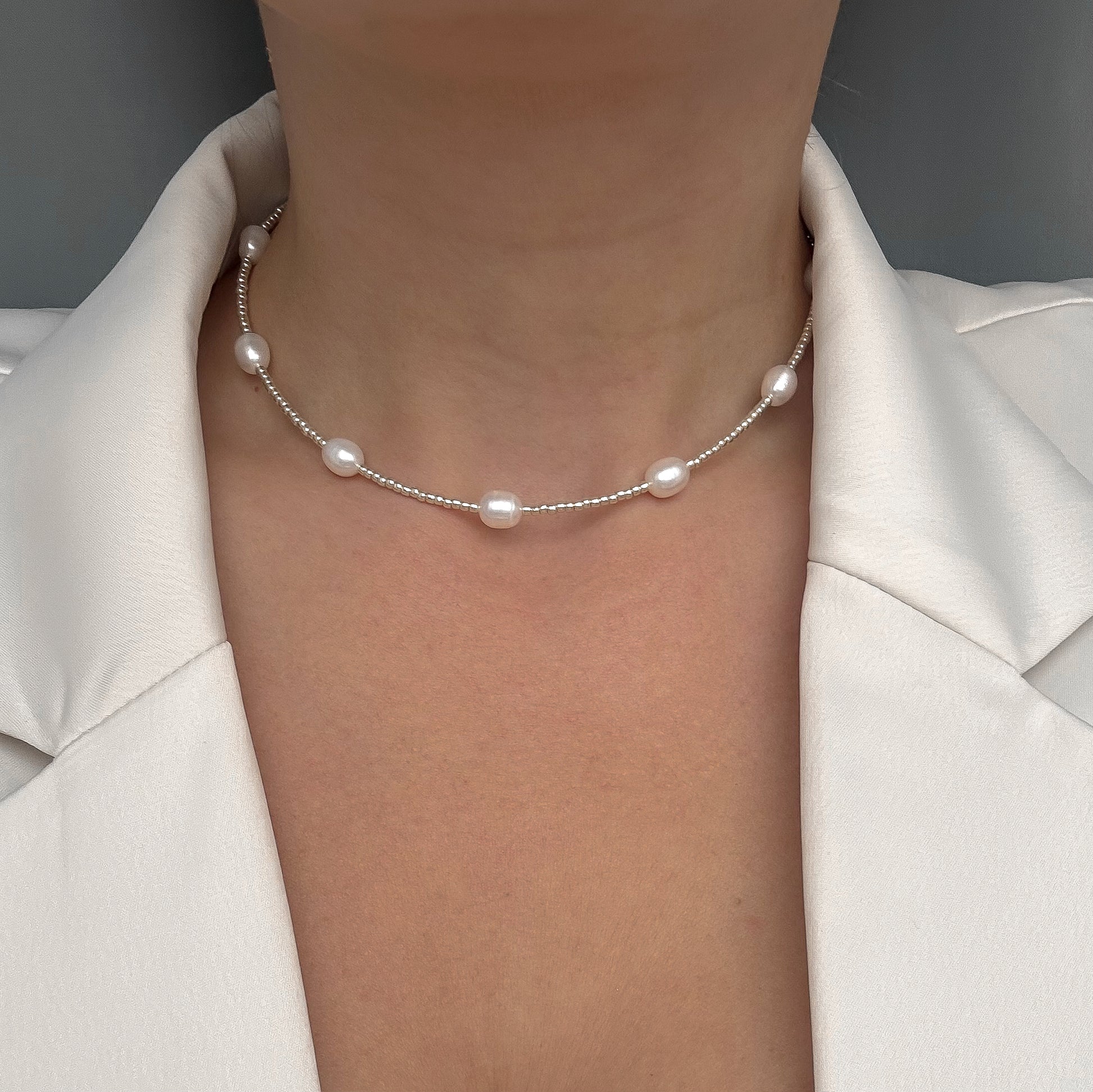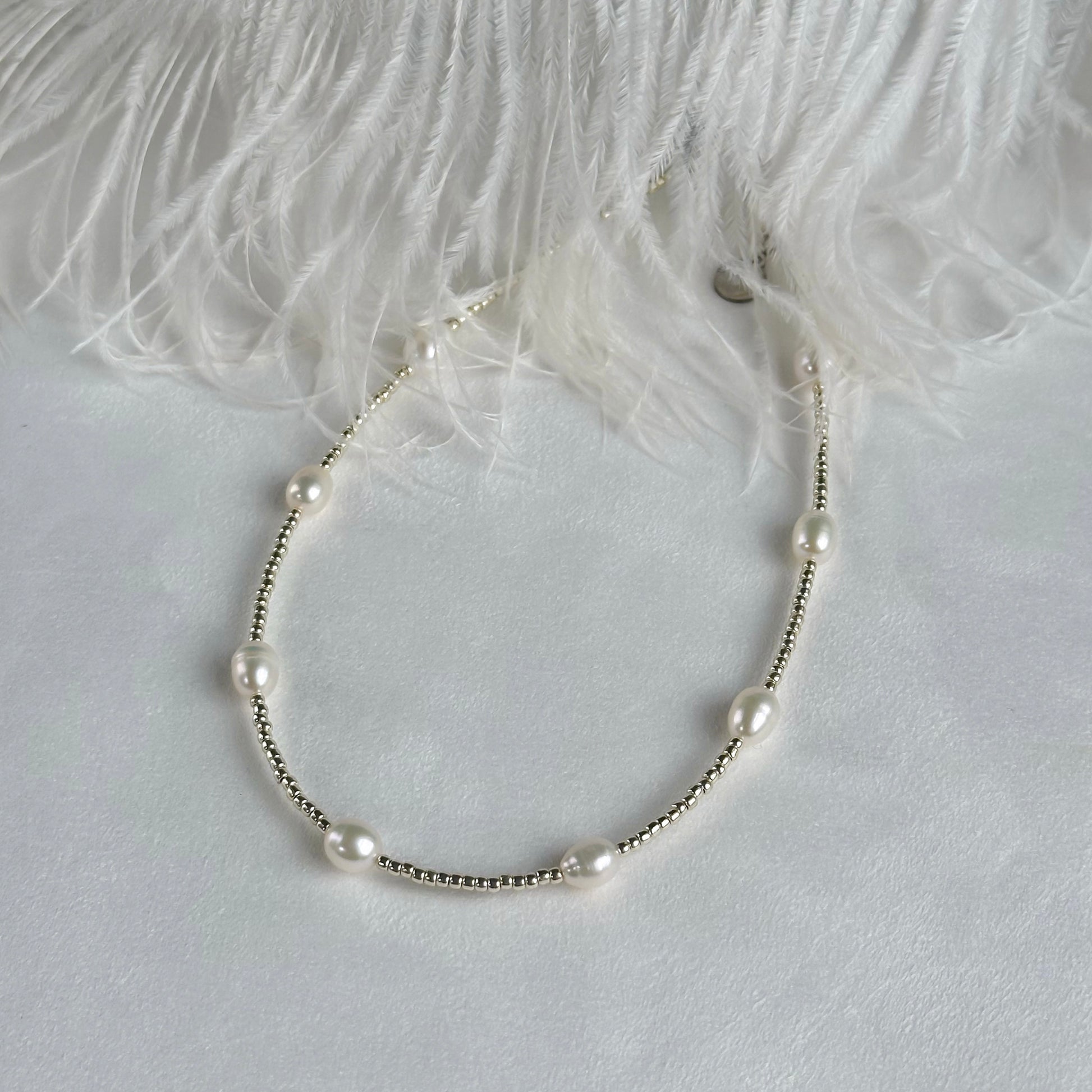 A delicate pearl necklace with Japanese seed beads — minimalist, lightweight, and made for everyday elegance.